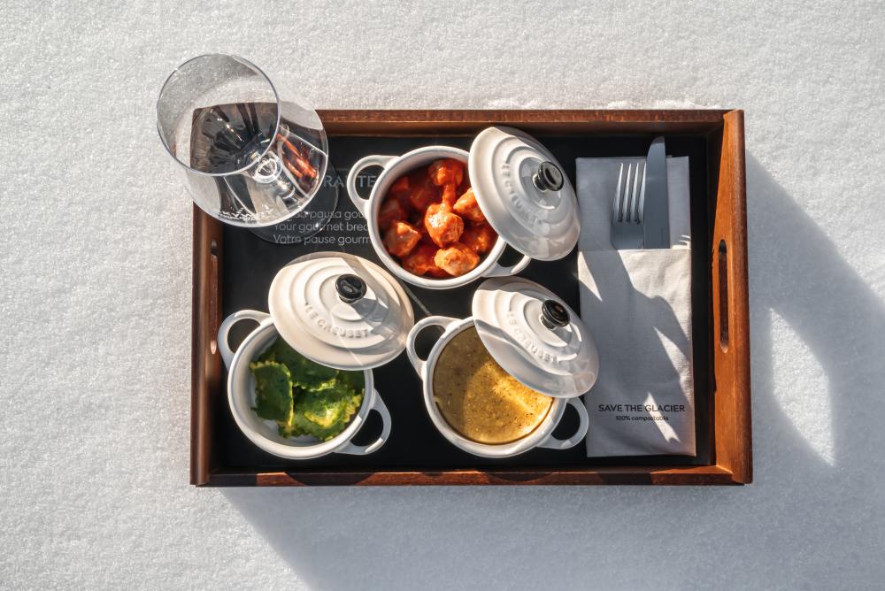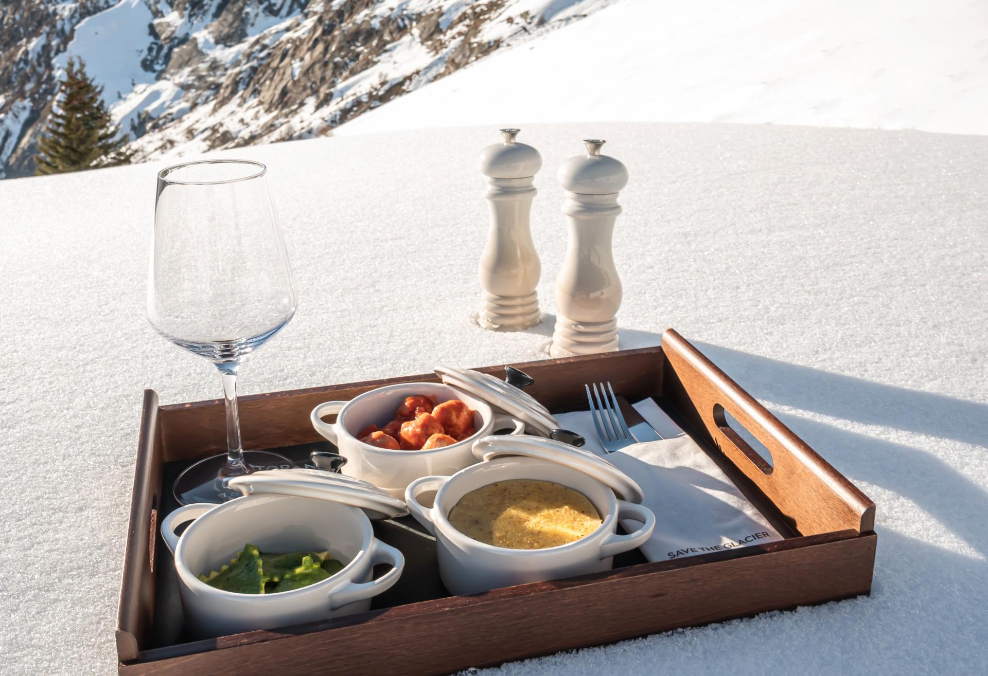 À 2 173 mètres d'altitude, sous les parois de verre du Restaurant Alpin du Pavillon | La Montagne, l'expérience culinaire de l'explorateur s'enrichit du design iconique de Le Creuset. Les cocottes blanches raffinées de la marque française sont à l'honneur lors de votre séjour alpin : les plats sont servis directement dans ces célèbres cocottes en fonte émaillée, où l'authenticité des produits de la Vallée d'Aoste rencontre l'élégance intemporelle du savoir-faire français.