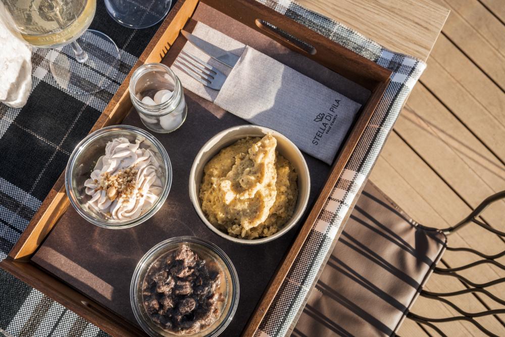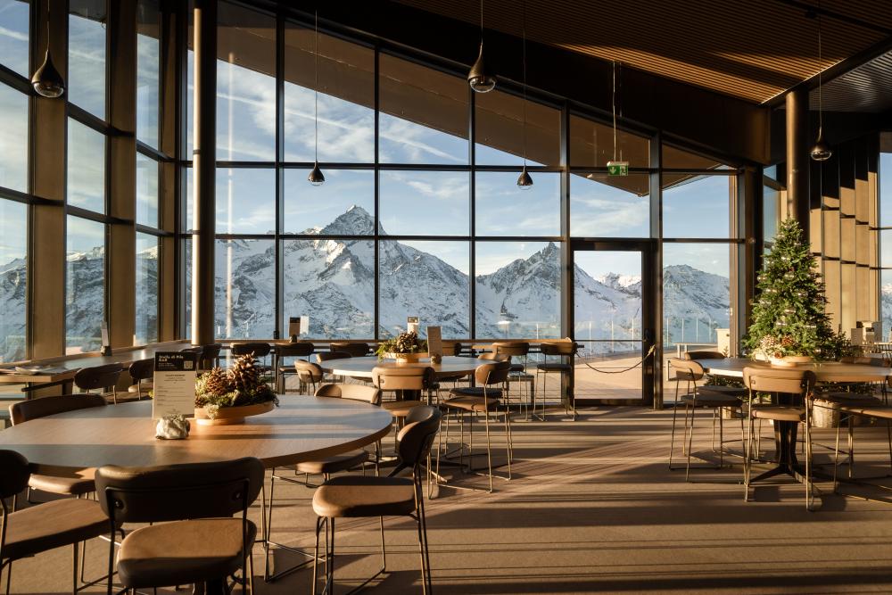 La Stella di Pila accoglie con uno stile essenziale e curato firmato Skyway Monte Bianco: dalla colazione all’aperitivo, dal pranzo a buffet alle bevande calde o fredde servite al bar. Tutto accompagnato da una selezione di vini della Valle d’Aosta per un’esperienza enogastronomica in contemplazione del panorama circostante.